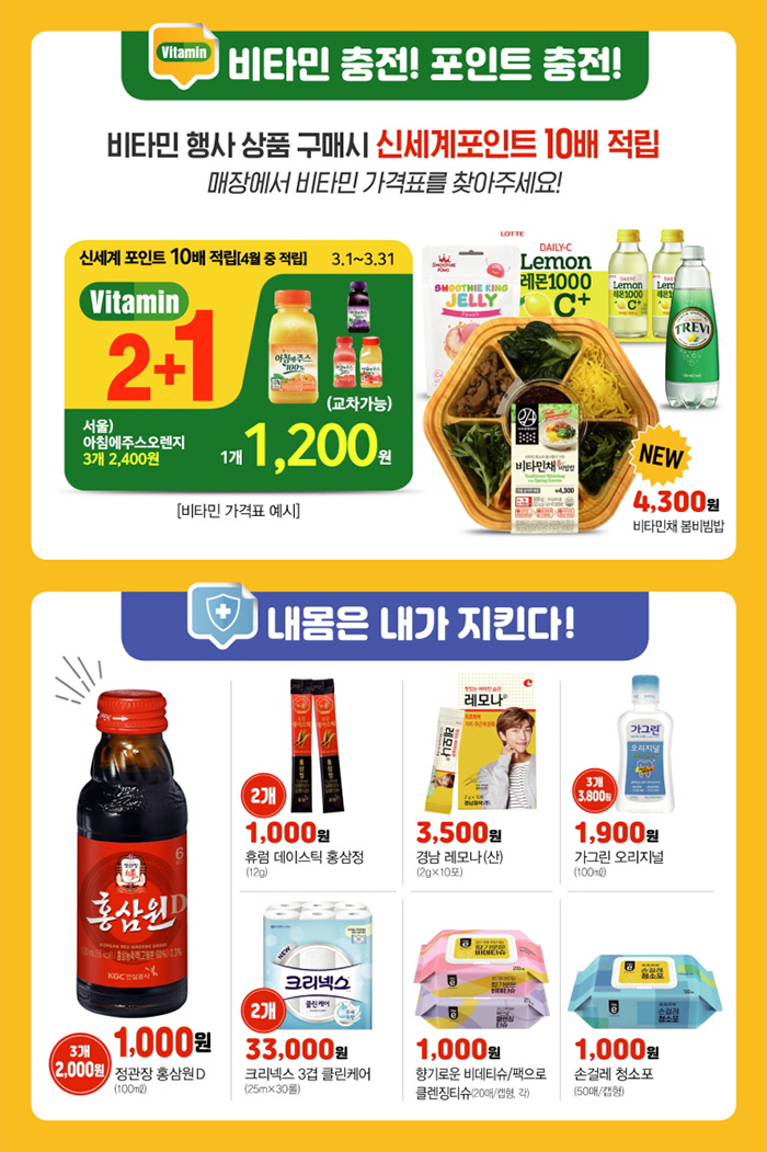 한편, 이마트24는 코로나19로 집에 머무는 고객이 늘어나면서 식사거리와 생필품 수요가 급증함에 따라, 먹거리/생필품 440종에 대해 대대적인 할인행사도 이달 내내 진행한다.