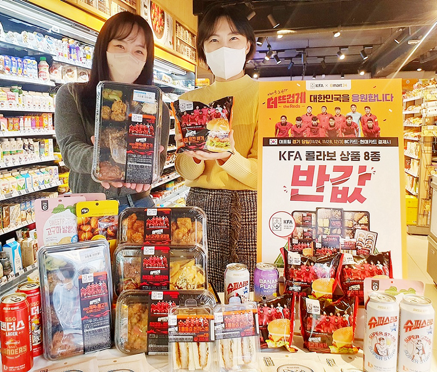 또, 경기 전날과 당일(12월 2일~3일) 상품 패키지에 선수들의 사진이 들어간 대한축구협회(KFA) 협업 먹거리 8종을 행사 제휴카드(BC/현대카드)로 결제 시 반값 할인, 베스트 안주류 10종에 대해 30% 할인(동일 기간, 동일 카드) 행사를 진행한다.