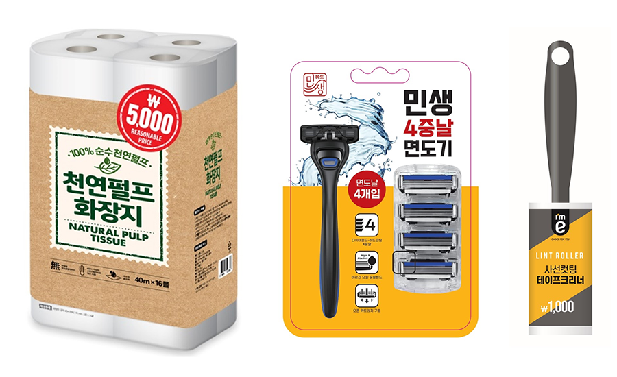 특히 민생 화장지 2종은 비식품 전체 상품에서 매출 1위를 기록할 정도로 고객의 반응이 좋다. 이마트24는 이처럼 초저가 상품을 찾는 고객이 증가하는 추세에 맞춰 5천원 천연펄프 화장지, 민생면도기, 1천원 균일가 사선컷팅 테이프크리너 등을 추가로 출시하며 상품 라인업 강화에 나선다.
