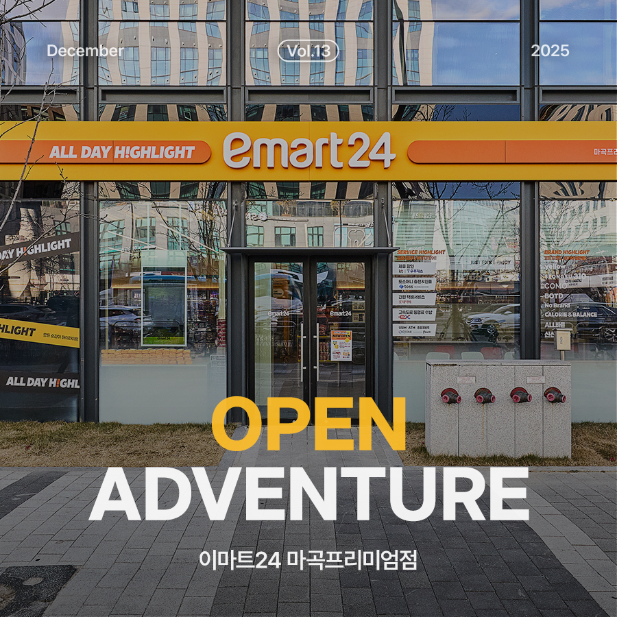 연말의 마곡. 찬 바람을 가르며 걷다 보면, 따뜻한 조명이 스며 있는 편의점 한 곳이 시선을 붙든다. 이마트24가 차세대 표준 모델로 선보인 프로토타입 1호점 ‘마곡프리미엄점’이다.