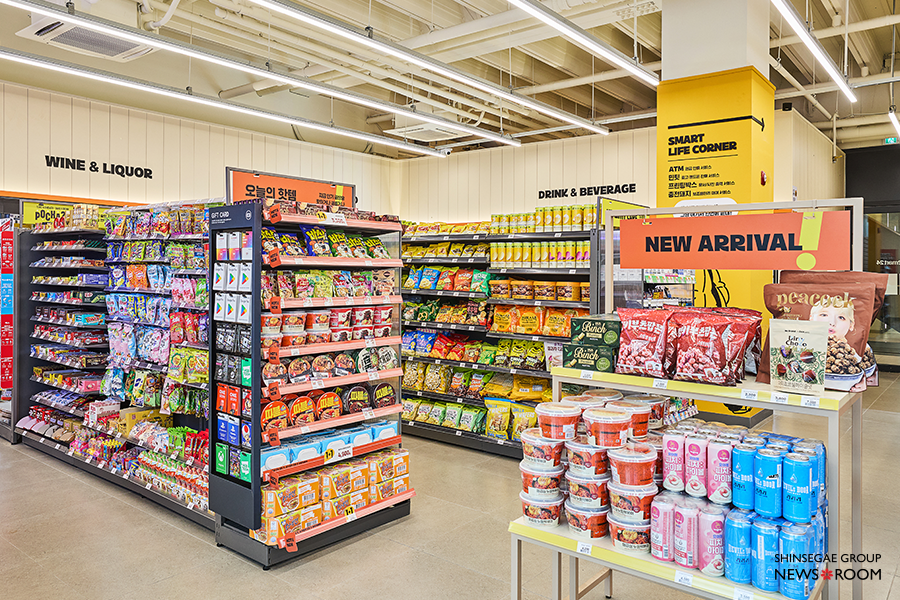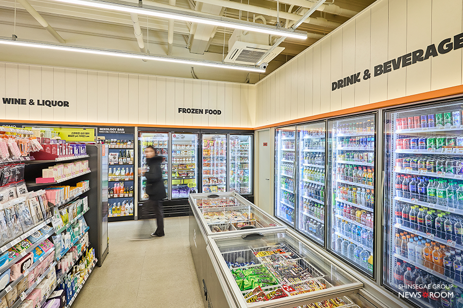 매장 중앙의 프레시레인은 냉동·냉장·주류·음료·프레시푸드가 선형으로 이어지는 직선형 구조다. 이 개방감 있는 구성은 고객에게 여유로운 쇼핑 경험을 제공하고, 경영주에게는 체류 시간이 구매 전환으로 이어지는 운영 효과를 가져온다.