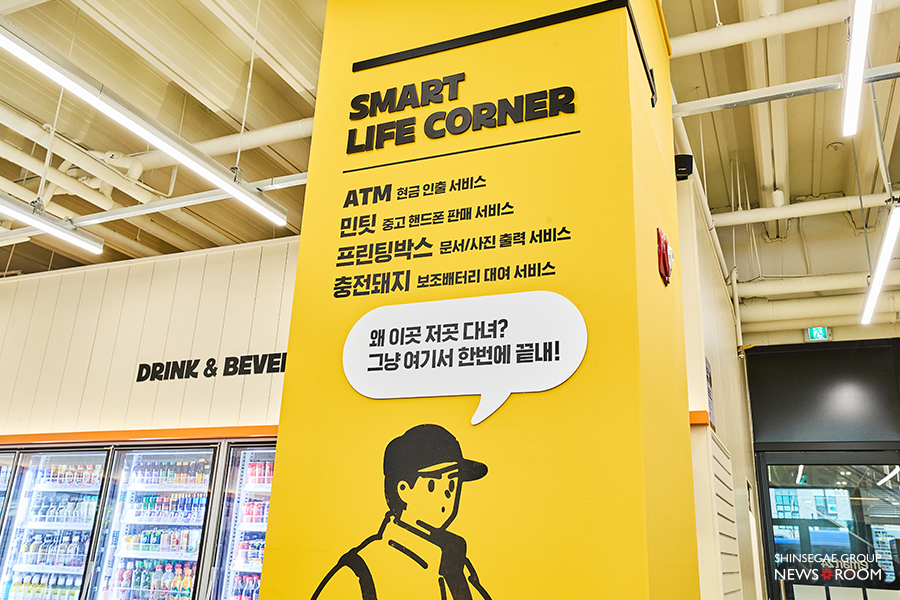 매장 가장 안쪽에는 ATM, 문서 출력, 휴대폰 충전 등을 한 번에 해결할 수 있는 스마트 라이프 코너가 자리한다. 쇼핑 동선과 생활 서비스 동선을 깔끔하게 분리해 편의성을 높였다.