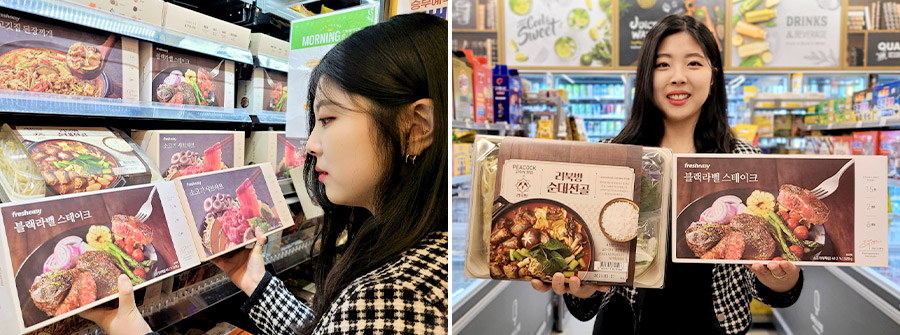 해당 상품은 ▲ 피코크 원주식장칼국수(7,900원) ▲ 피코크 부채살찹스테이크(17,800원) ▲ 피코크 리북방순대전골(19,800원) ▲ 프레시지 블랙라벨스테이크(20,900원)로 전국 이마트24 매장에서 ‘1+1’ 상품으로 만나볼 수 있다.