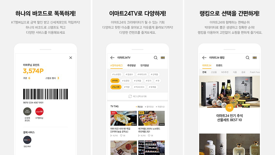 이마트24는 이마트24TV, 이마트24 랭킹 등 고객, 경영주와 공유할 수 있는 콘텐츠를 모바일 앱에 적용했다.