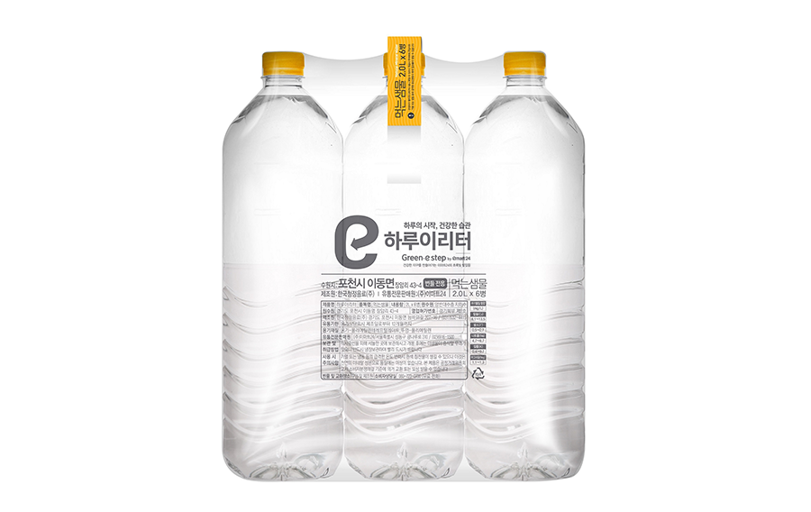 무라벨 패키지가 적용되는 하루이리터2L 번들 제품(3000원)은 기존 개별 용기 전면에 부착되던 라벨을 모두 제거하고, 6입 번들을 포장하는 패키지에만 브랜드와 표시사항을 표기했다.