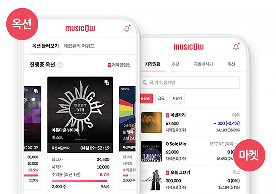 음악저작권 ‘주’를 보유하게 된 고객은 향후 뮤직카우를 통해 해당 지분만큼의 음악 저작권료를 매월 받을 수 있으며, 거래를 통해 추가 수익 창출도 가능하다. 뮤직카우에서 거래되는 저작권은 정확히는 ‘저작권료 참여 청구권’으로 주식과 유사하게 ‘주’단위로 거래된다.