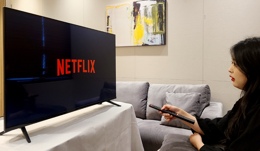 이마트24가 판매하는 아임e 스마트TV는 넷플릭스와 유튜브, 프라임비디오 등을 사전 탑재한 것이 특징이다. 집에서 누구나 유튜브, OTT(온라인 동영상 서비스), VOD(주문형 비디오)를 손쉽게 즐길 수 있도록 리모컨에 바로실행 버튼도 추가했다.