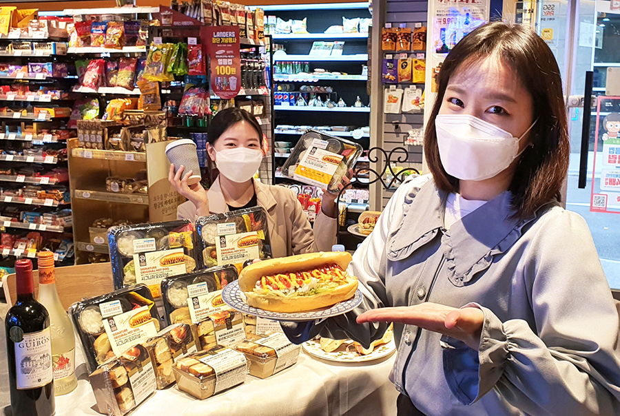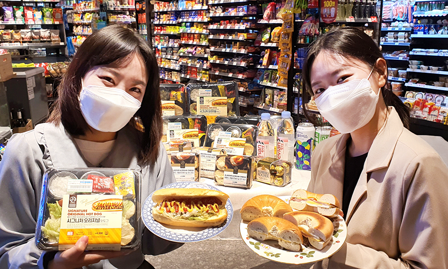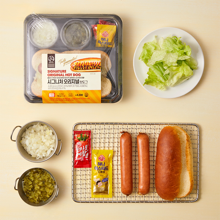 이에 이마트24는 이달 초 ‘시그니처 오리지널 핫도그’를 출시했다. 시그니처 핫도그는 탱글탱글한 식감과 풍부한 육즙, 감칠맛이 우수한 쟌슨빌 소시지를 사용하고, 빵의 풍미를 충분히 느낄 수 있는 브리오슈번을 사용했다. 빵이 눅눅해 지는 것을 방지하기 위해 별도로 담겨있는 다진 피클과 양파, 케첩, 허니머스터드 소스를 사용해 고객이 직접 만들어 먹을 수 있도록 개발됐다.