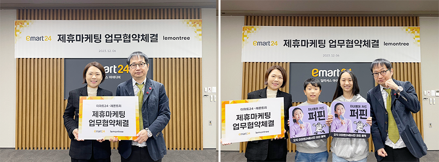 이마트24가 지난 6일(수) 서울 성동구 소재 이마트24 대회의실에서 아동용 용돈 관리 앱 ‘퍼핀’을 운영 중인 레몬트리(이하, 퍼핀)와 전략적 업무협약(이하, MOU)을 체결했다.