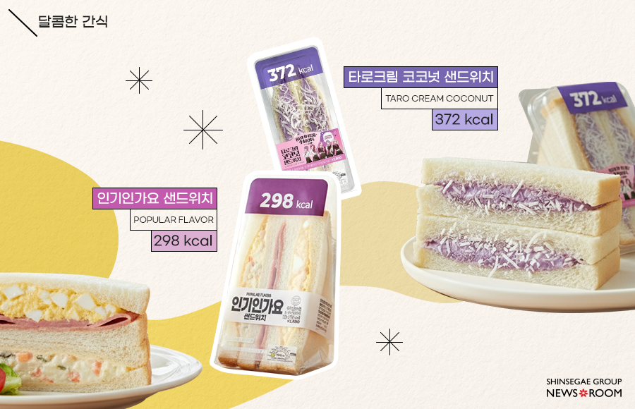 왠지 모르게 출출한 밤, 달달한 음식이 당길 땐 이마트24로 향하자. 타로크림 코코넛 샌드위치(2,800원)는 고소하고 달착지근한 타로크림에 코코넛을 토핑해 부드러움과 씹는 맛을 동시에 살렸다. 아이돌이 반한 맛으로 유명한 인기인가요 샌드위치(2,800원)도 달콤한 딸기쨈에 감자샐러드, 계란샐러드가 어우려져 인기가 높다. 두 제품 부담 없는 칼로리로 늦은 밤 간식으로 손색없다.