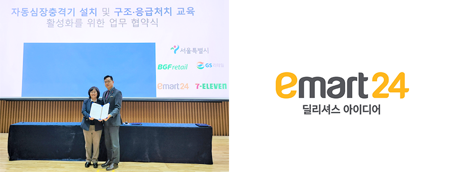 이번 MOU를 통해 ▲ 이마트24 매장 내 자동심장충격기 도입 ▲ 이마트24 매장 내 직원 응급처치 교육 참여 확대 ▲ 자동심장충격기 유지 및 관리 수행 등을 상호 협력해 추진할 예정이다.