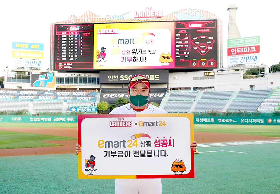 이마트24 마케팅팀 한현민 파트너는 “SSG랜더스와 함께 할 수 있는 사회공헌활동을 고민하던 중, 이마트24를 떠올릴 수 있고 관객들의 호응을 이끌어 낼 수 있는 기부 행사를 기획하게 됐다”며