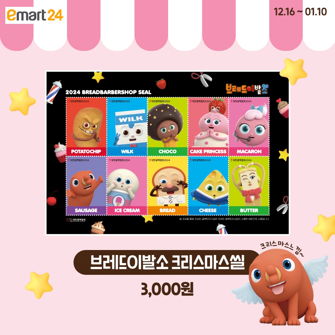 이마트24x대한결핵협회, 크리스마스 씰 모금 캠페인 펼쳐… 이마트24, 브레드이발소 크리스마스 씰 판매!