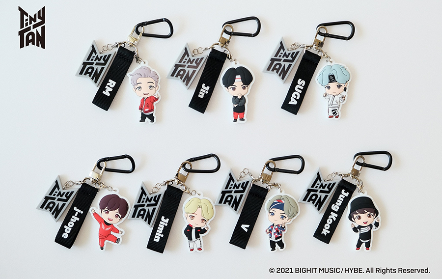 ‘타이니탄 실리콘 키링 티머니카드’는 방탄소년단 일곱 멤버들이 귀여운 캐릭터로 탄생된 ‘타이니탄(TinyTAN)’을 활용해, 실리콘 키링으로 만든 교통카드다.