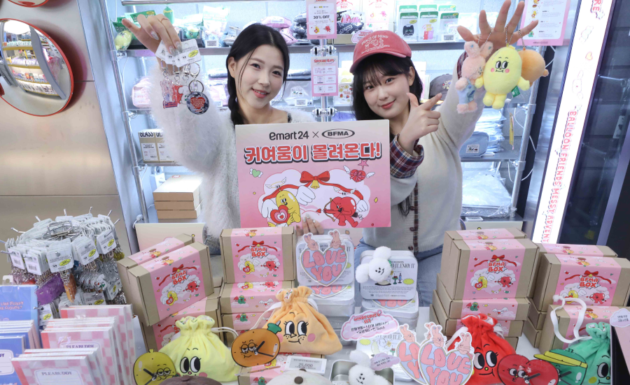 2월 2일 월요일 오전 이마트24 ‘트렌드랩성수’에서 모델들이 ‘벌룬프렌즈’ 브랜드팝업존 상품을 소개하고 있다. 이번 브랜드팝업존은 ‘엉망진창인 당신의 사랑을 응원한다’는 의미의 ‘CHEERING FOR YOUR MESSY LOVE’ 컨셉으로 선보이며 3월 14일(토)까지 운영된다.