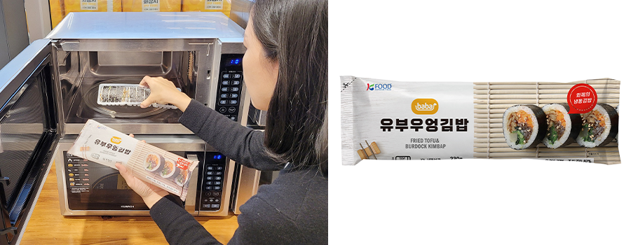 전자레인지에 데운 후에도 김밥이 터지지 않도록 김 굽는 온도를 조절하고, 아삭한 식감을 느낄 수 있도록 김밥 내용물로 들어가는 당근을 80%만 익히는 등 제조업체의 차별화된 기술력과 노하우가 적용된 상품이다. 또한, 특허 받은 3분할 김밥 용기로 열전도율을 높임으로써 2분만에 균일하고 빠른 해동이 가능하다.