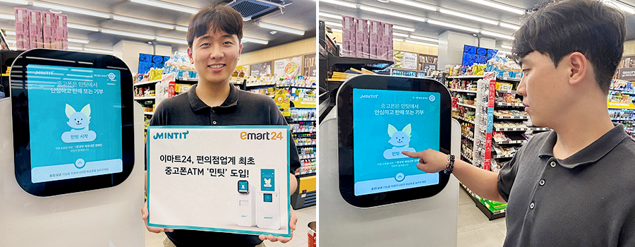 이마트24가 편의점업계 최초로 인공지능(AI)기반 중고폰 판매 ATM ‘민팃(MINTIT)’을 도입한다.