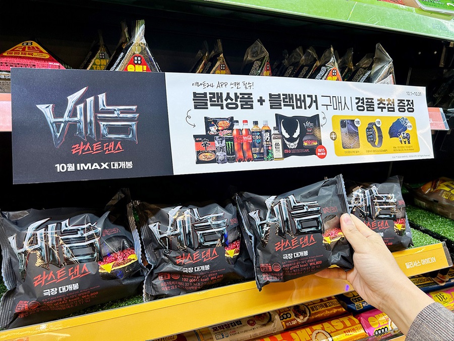 이마트24 브랜드마케팅팀 김승현 파트너는 “매니아 층이 많은 <베놈 : 라스트 댄스> 영화를 활용한 ‘블랙비프버거’로 고객들에게 시각적, 미각적인 즐거움을 제공하려고 한다”며