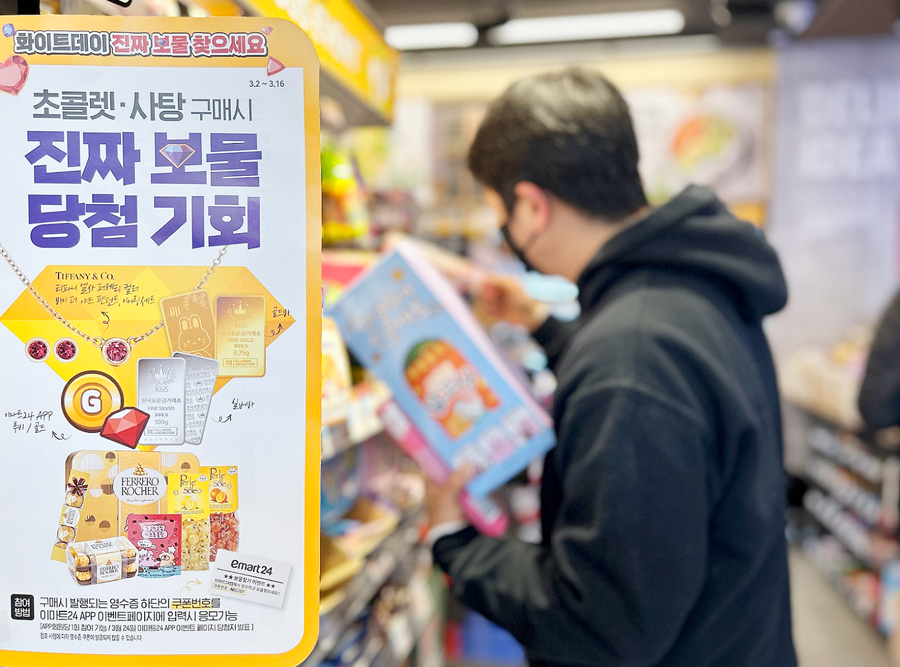이마트24가 화이트데이를 맞아 380만원 상당의 주얼리, 골드바 등을 경품으로 내걸었다.