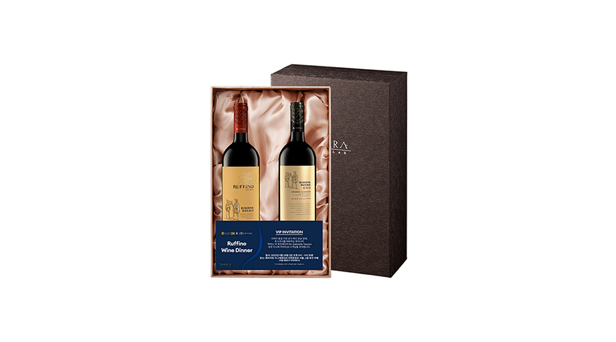 ‘루피노 디너 패키지’(99000원)는 루피노 리제르바 두칼레 750ml 2종(끼안티 클라시코 리제르바 / 오로)과 루피노 디너 초대권 1장으로 구성돼 있다. 해당 패키지를 구입한 고객은 4월 28일(금) 여의도에 위치한 ‘메리어트 이그제큐티브 아파트먼트 2층 파크 카페’에서 루피노 와이너리의 와인 5종과 안심스테이크 메인 요리를 포함한 5종의 코스요리를 즐길 수 있다.