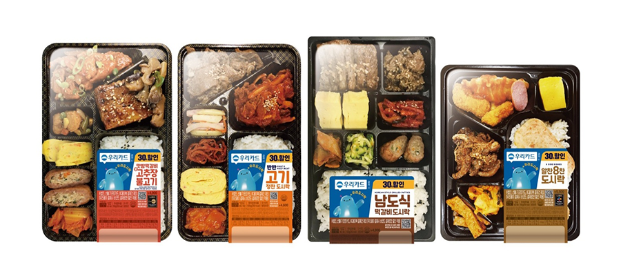 이마트24는 ‘우리카드’와 손잡고 이달 1일(화)부터 고객이 행사(우리)카드로 결제 시 30% 할인 혜택을 제공하는 ‘우리도시락’ 4종을 선보인다.