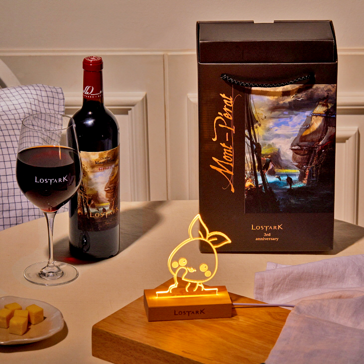 4월 5일부터 온·오프라인을 통해 구매하는 고객들은 2018년 빈티지 한정판 샤또몽페라 레드와인과 ‘로스트아크’ 로고가 고급스럽게 각인된 슈피겔라우 비노비노 보르도 와인잔 패키지와 함께 귀여우면서 은은한 분위기를 연출하는 ‘모코코’ 무드등까지 소장할 수 있다. 가격은 55000원.