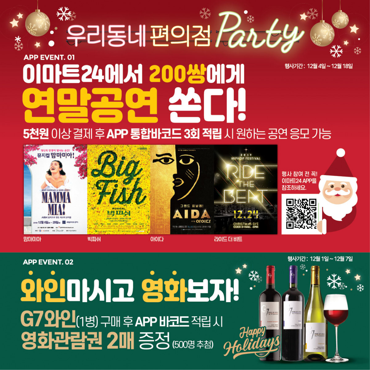 MEDIA 글자 크기 보통 크게 아주 크게 공유하기 페이스북 X 카카오톡 링크 복사 링크 복사됨 도구 보기 이미지 다운로드 이마트24, 연말 맞아 공연/영화 관람권 1400장 쏜다! 2019.12.06 이마트