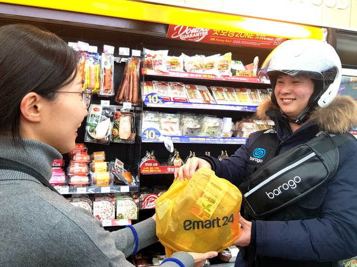 이마트24는 배달앱 ‘요기요’와 손잡고 편의점 상품 배달 서비스를 시작한다. 고객이 ‘요기요’ 앱을 통해 주문하면, 배달 업체 ‘바로고’ 라이더가 주문 받은 이마트24를 방문해 배송을 담당하게 된다.