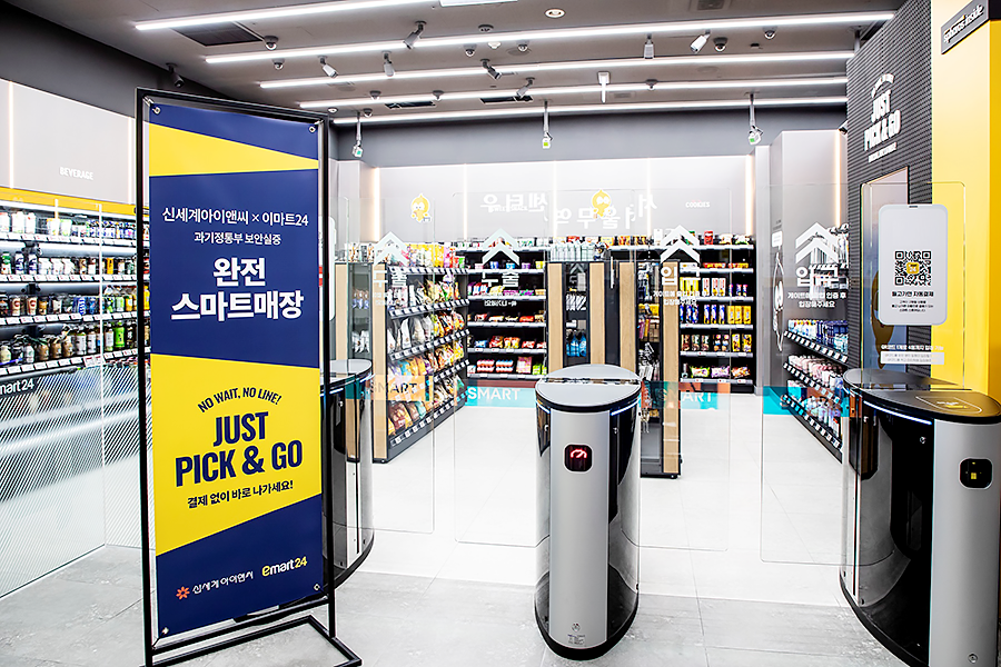 * 완전스마트매장: 쇼핑 후 상품을 들고 매장을 나가면 AI비전, 무게센서, 클라우드POS 등 리테일테크를 통해 자동으로 결제되는 매장으로 신세계아이앤씨가 자체 개발한 ‘셀프서비스 스토어’ 기술이 적용됨