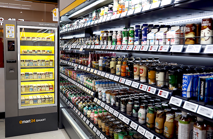 ‘스파로스 스마트선반’을 통해, 성인인증이 필요한 담배 판매도 직원이 상주하지 않는 시간에 판매할 수 있게 됐다. 스파로스 스마트선반은 고객이 간편한 본인 확인 서비스(PASS)로 성인 인증 후 선반 문을 열고 제품을 꺼낸 뒤 문을 닫으면, 상품과 가격정보를 인식해 자동 결제된다. 이번 완전스마트매장에서는 고객 편의를 위해 퇴장 시 구매한 다른 상품과 합산 결제 되도록 했다.