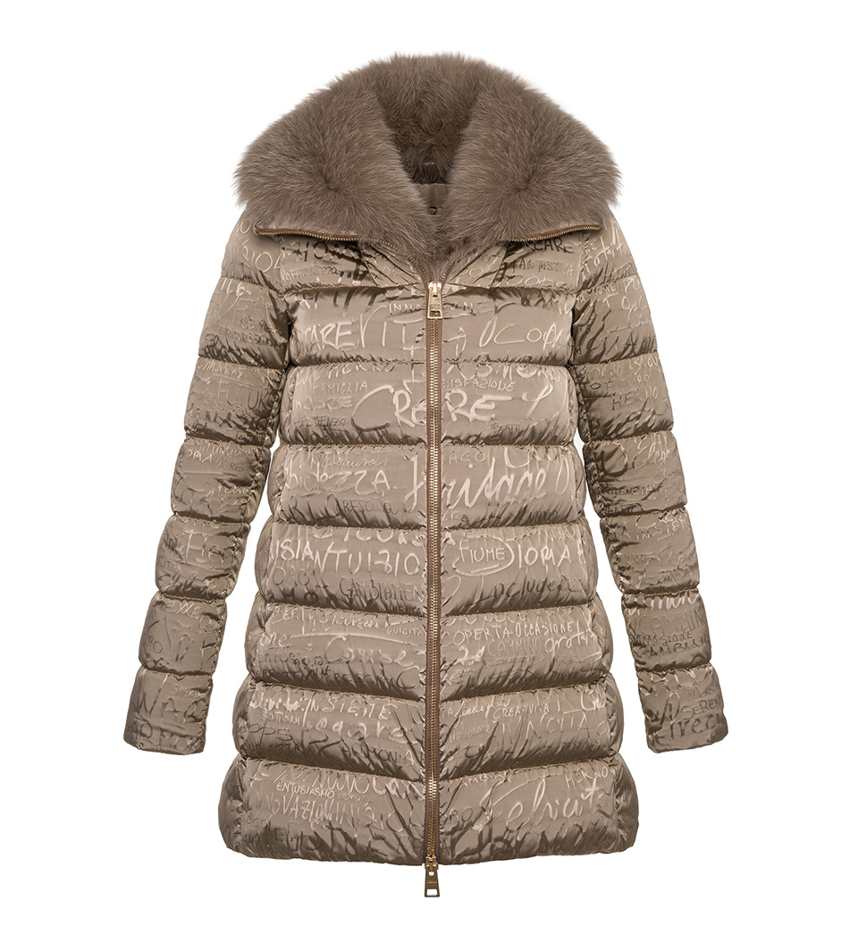 여성용 다운은 아래로 갈수록 넓어지는 에이(A)형 디자인으로 탈부착 가능한 퍼 장식이 따뜻하면서 화사한 느낌을 주며, 남성용은 후드가 달린 기본형 파카 스타일이다.
