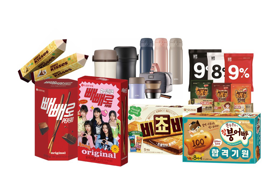 그 외 행사품목으로, 수험생들에게 선물하기 좋은 ‘오리온 합격기원 비쵸비/참붕어빵(125g/232g, 2,380원/3,980원),’ ‘롯데 허쉬키세스 펜슬케이스/자이언트바 팝업케이스(208g/390g, 7,980원/12,160원),’ ‘농심 린트 린도르 하트(96g, 9,880원)’ 등을 준비했다.
