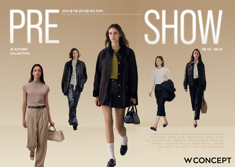 W컨셉은 오는 18일부터 31일까지 이러한 패션 트렌드를 확인해볼 수 있는 ‘프리쇼’ 행사를 개최한다. 주요 브랜드의 25년 가을∙겨울(FW) 컬렉션과 플랫폼 단독으로 선공개하는 의류, 가방, 잡화 등 신상품을 소개한다. W컨셉의 감각으로 제작한 패션 화보와 숏폼 영상도 다수 선보여 트렌드와 스타일링 노하우도 확인할 수 있다.