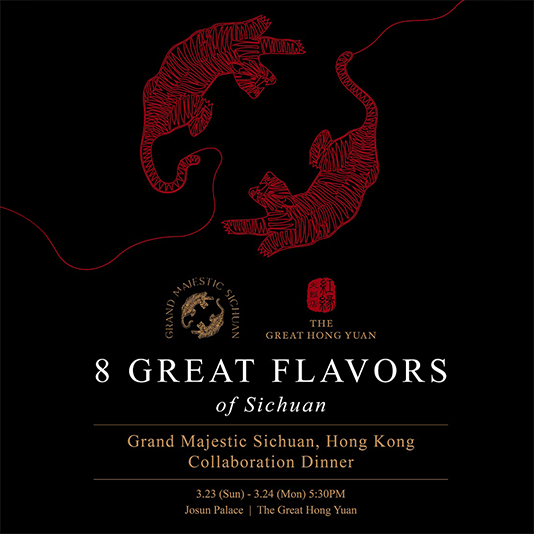 한국과 홍콩의 중식 대가들의 특별한 만남! 조선 팰리스, ‘더 그레이트 홍연 X 그랜드 마제스틱 시추안’ 콜라보레이션 디너 ‘8 Great Flavors of Sichuan’ 개최조선호텔앤리조트의 최상급 호텔 브랜드 ‘조선 팰리스 서울 강남, 럭셔리 컬렉션 호텔(이하 조선 팰리스)’의 차이니즈 파인다이닝 레스토랑 ‘더 그레이트 홍연(The Great Hong Yuan)’이 홍콩의 사천식 요리 파인다이닝 ‘그랜드 마제스틱 시추안 (Grand Majestic Sichuan)’과 협업해 특별한 콜라보레이션 디너를 개최한다.