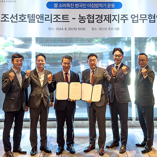 조선호텔앤리조트 x 농협경제지주, 쌀 소비 촉진을 위한 업무협약 체결조선호텔앤리조트(대표이사 이주희)와 농협경제지주(대표이사 박서홍)가 쌀 소비 촉진의 일환으로 ‘아침밥 먹기 상생협력’을 위한 업무협약을 체결했다.