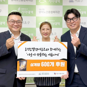 조선호텔앤리조트, 말복 앞두고 삼계탕 나눔 봉사활동 펼쳐조선호텔앤리조트가 말복 더위와 함께 기록적인 폭염이 지속되는 가운데, 서울시자원봉사센터 및 성남시, 여주시자원봉사센터와 연계해 취약계층 대상으로 건강식을 지원하며 임직원 봉사활동을 펼쳤다. 조선 팰리스, 웨스틴 조선 서울, 레스케이프, 외식사업부, 레저사업부 등 조선호텔앤리조트의 각 부서 임직원들은 8월 1일(금)부터 8월 8일(금)까지 서울과 경기 지역 자원봉사센터 내의 노인복지관, 경로당,