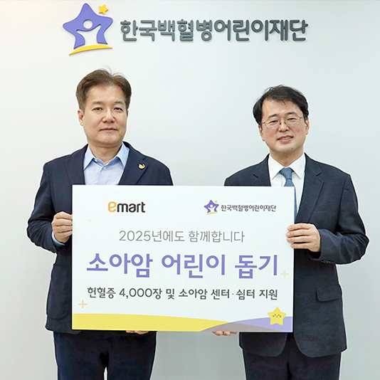 이마트, 한국백혈병어린이재단에 헌혈증·후원금 기부이마트가 임직원의 자발적인 기부와 헌혈 참여로 소아암 환자들의 치료비 경감을 위해 나섰다.