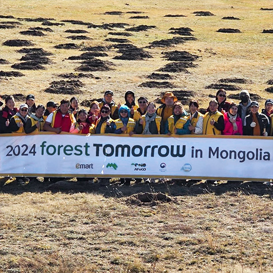 “내일을 위해! 황폐한 사막을 숲으로!” 이마트, 사막화 위기 몽골에 나무 1만5천 그루 심는다이마트가 몽골 식목일에 맞춰, 지난 10일(금) 몽골 ‘테를지 국립공원’에 나무 심기에 돌입했다. 이마트는 이번 식재를 시작으로 5년 간 4.4ha 부지에 1만 5천 그루를 심어 ‘내일의 숲’으로 명명한 숲을 조성할 계획이다.