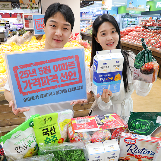 이마트, 5월 ‘가격파격 선언’으로 물가 잡는다이마트가 5월 ‘가격파격 선언’ 할인 행사로 5월 29일(목)까지 그로서리 5대 및 가공·일상 50대 품목을 초저가로 판매한다.
