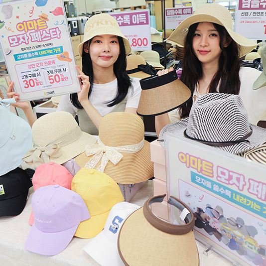 모자 1,000개 한 데 모아, 최대 50% 할인! 이마트, 담을수록 싸지는 ‘모자 페스타’ 열어이마트가 5/15(목)까지 약 1천여종의 모자를 최대 50% 할인하는 ‘모자 페스타’를 진행한다.