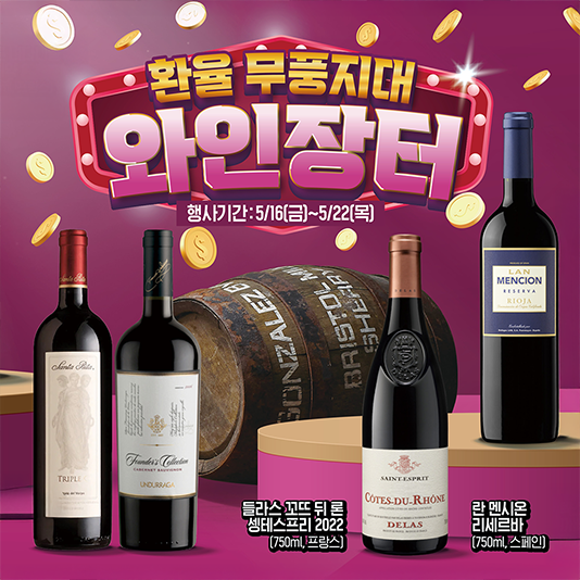 트렌디한 화이트, 스파클링부터 고가 프리미엄까지… 환율 무풍지대, 이마트 와인 장터국내 와인 애호가들이 기다리는 이마트 와인장터가 열린다. 이마트는 오는 16일(금)부터 22일(목)까지 상반기 최대 규모 와인 행사를 개최한다.