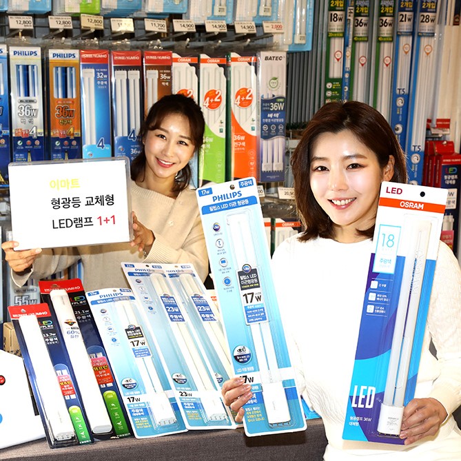 이마트가 형광등을 대신해 전기 공사 없이 바로 갈아끼우는 LED 램프를 선보인다.