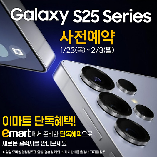 이마트, 삼성 갤럭시 S25 사전예약 개시이마트가 2월 3일(월)까지 이마트 내 전국 삼성 모바일 입점 점포에서 신제품 ‘삼성 갤럭시 S25 시리즈’ 사전 예약을 진행한다.