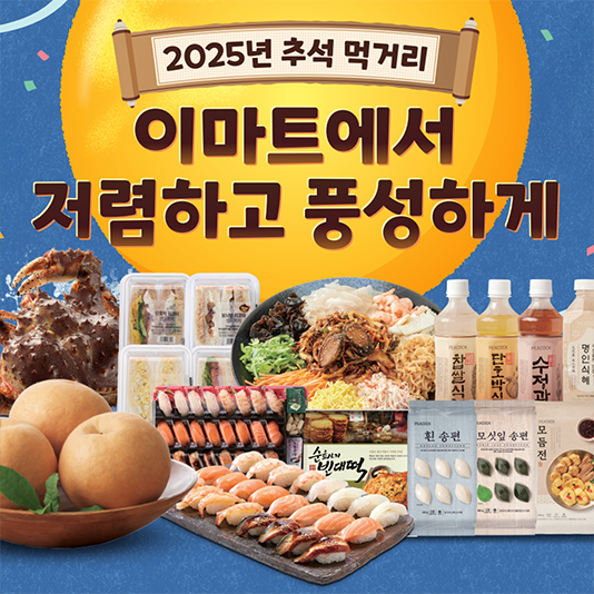 긴 연휴를 위한 강력한 혜택 명절 먹거리 이마트에서 저렴하고 풍성하게풍성하고 즐거운 명절을 위한 알뜰 쇼핑 기회가 펼쳐진다. 이마트가 5일(일)까지 고래잇페스타와 더불어 다양한 추석 먹거리 할인 행사를 진행한다. 명절 연휴 가족들과 함께 즐길 수 있고, 혼자 긴 휴일을 보내는 소비자들도 알차게 이 시간을 보낼 수 있는 다양한 아이템들을 압도적인 상품성과
