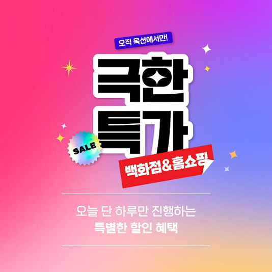 옥션, 14일 단 하루 백화점·홈쇼핑 ‘극한특가’신세계그룹 계열 이커머스 옥션이 14일 하루 동안 ‘극한특가’ 프로모션을 열고, 백화점 및 홈쇼핑 인기 상품을 할인가에 판매한다.