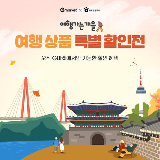 ‘여행가는 가을’… G마켓, ‘여행상품 특별 할인전’ 진행신세계그룹 계열 이커머스 G마켓이 ‘여행하는 가을, 여행상품 특별 할인전’ 프로모션을 열고 숨은 국내 여행지를 할인 쿠폰과 함께 제안한다.
