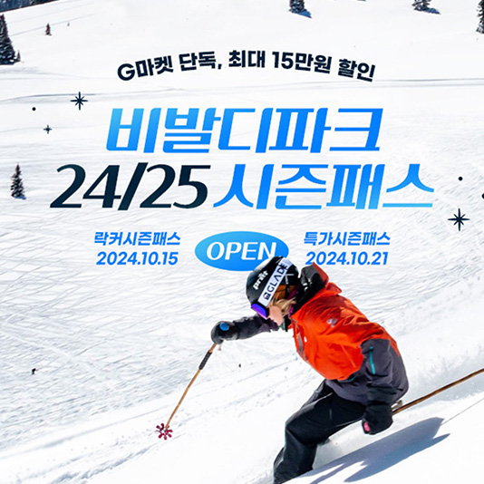 ‘스키시즌 준비’… G마켓, ‘비발디파크 시즌패스’ 단독 판매신세계그룹 계열 이커머스 G마켓이 겨울 스키시즌을 겨냥해 11월 4일까지 ‘비발디파크 24/25 시즌패스’ 프로모션을 열고, ‘락커시즌패스’를 단독 판매한다.