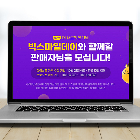 ‘평소 매출 3배’… G마켓, ‘빅스마일데이’ 참여 판매자 모집신세계그룹 계열 이커머스 G마켓과 옥션이 11월에 열릴 연중 최대 쇼핑 축제 ‘빅스마일데이’ 참여 판매자를 모집한다. 이번 행사는 할인쿠폰 등 마케팅비용을 G마켓이 부담하고, 온오프라인 채널을 활용해 상품 노출을 확대하는 등 판매자 지원 정책을 대폭 강화한다.