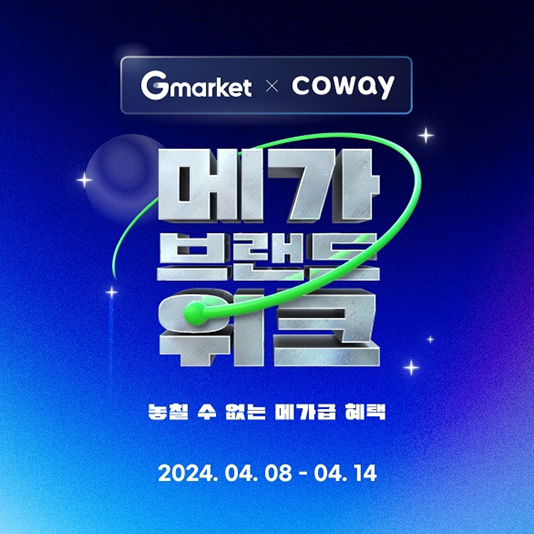G마켓, ‘코웨이 메가브랜드위크’ 진행… 렌탈 상품 특가G마켓이 14일까지 ‘코웨이 메가브랜드위크’를 열고 정수기, 공기청정기 등 인기 상품을 특가 판매한다. 렌탈료 반값 할인에 스마일캐시 증정, 100원딜 등 파격적인 혜택을 제공한다.