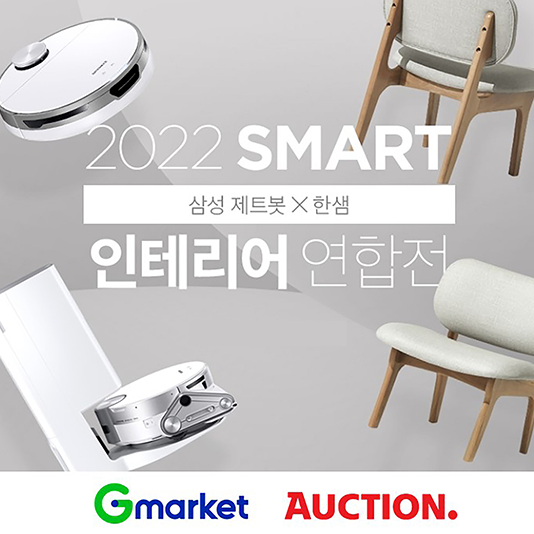 지마켓글로벌, ‘가전X가구 콜라보 할인’…G마켓·옥션, 삼성 제트봇·한샘 기획전 진행국내 대표 온라인마켓플레이스 G마켓과 옥션이 가전, 가구 콜라보 프로젝트 ‘2022 스마트 인테리어 연합전-삼성 제트봇X한샘’을 13일까지 진행한다. 9일에는 G마켓 라이브방송을 통해 강력한 혜택도 선보일 예정이다.